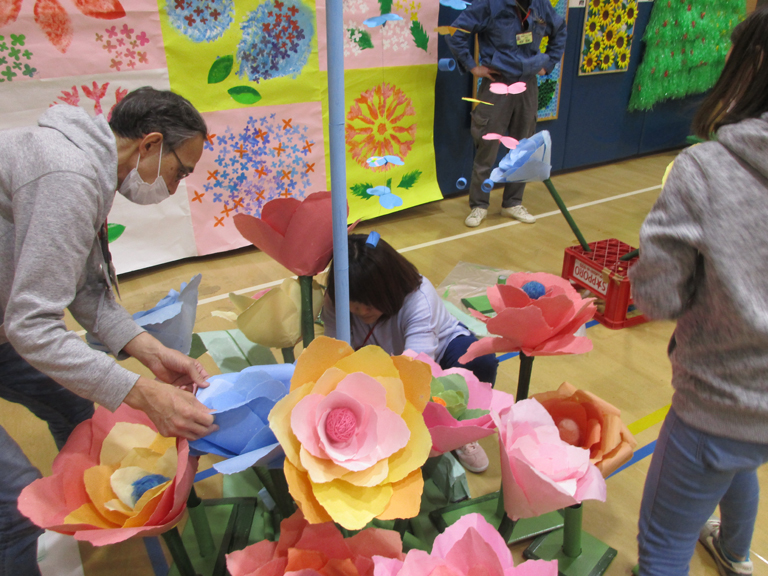 毎年2月に1週間ほどの期間開催しています。日頃のはつらつ太陽での活動の様子や、行事や旅行、外出などの紹介と、各グループが制作した作品。はつらつ太陽全体で取り組んだ作品(全体作品)の展示を行う、1年間の成果を発表する場です。毎年テーマを決めて、テーマに沿った作品が多く展示されます。過去のテーマは「花」「海」「宇宙」「はつらつの四季」「虹」「絆」。昨年は「平成最後の雛祭り」でした。