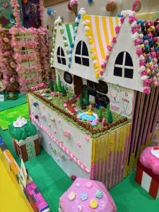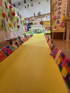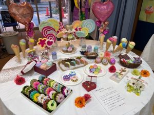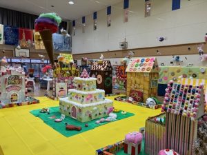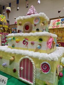 毎年開催しています、はつらつ太陽施設紹介~作品展示~、今年度は「お菓子」をテーマに、お菓子の家やお菓子の街並みをイメージした展示!
